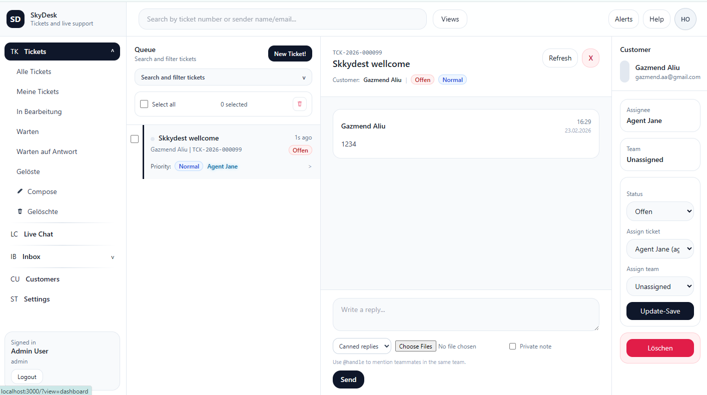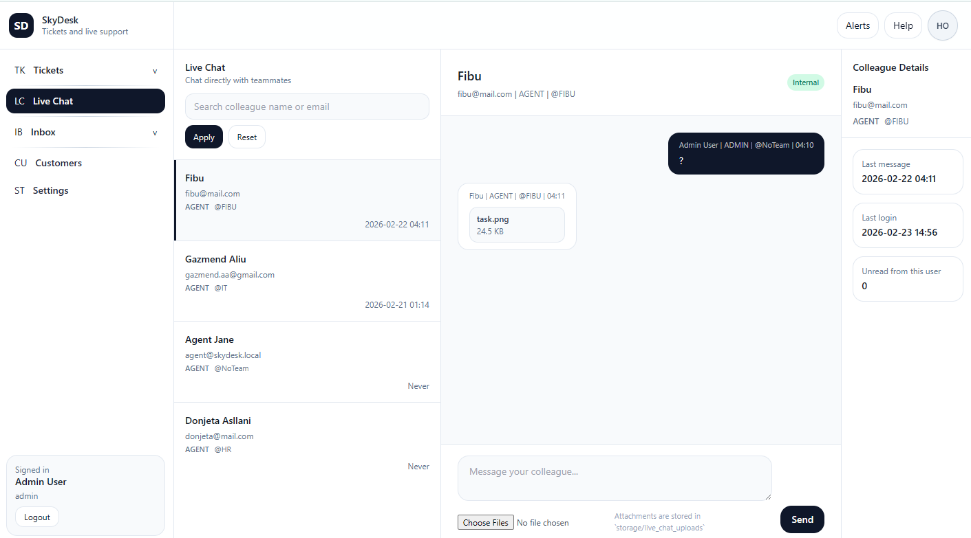 SkyDesk applies role rules for admin, agent, and customer users. Each role sees and performs only the actions it should.